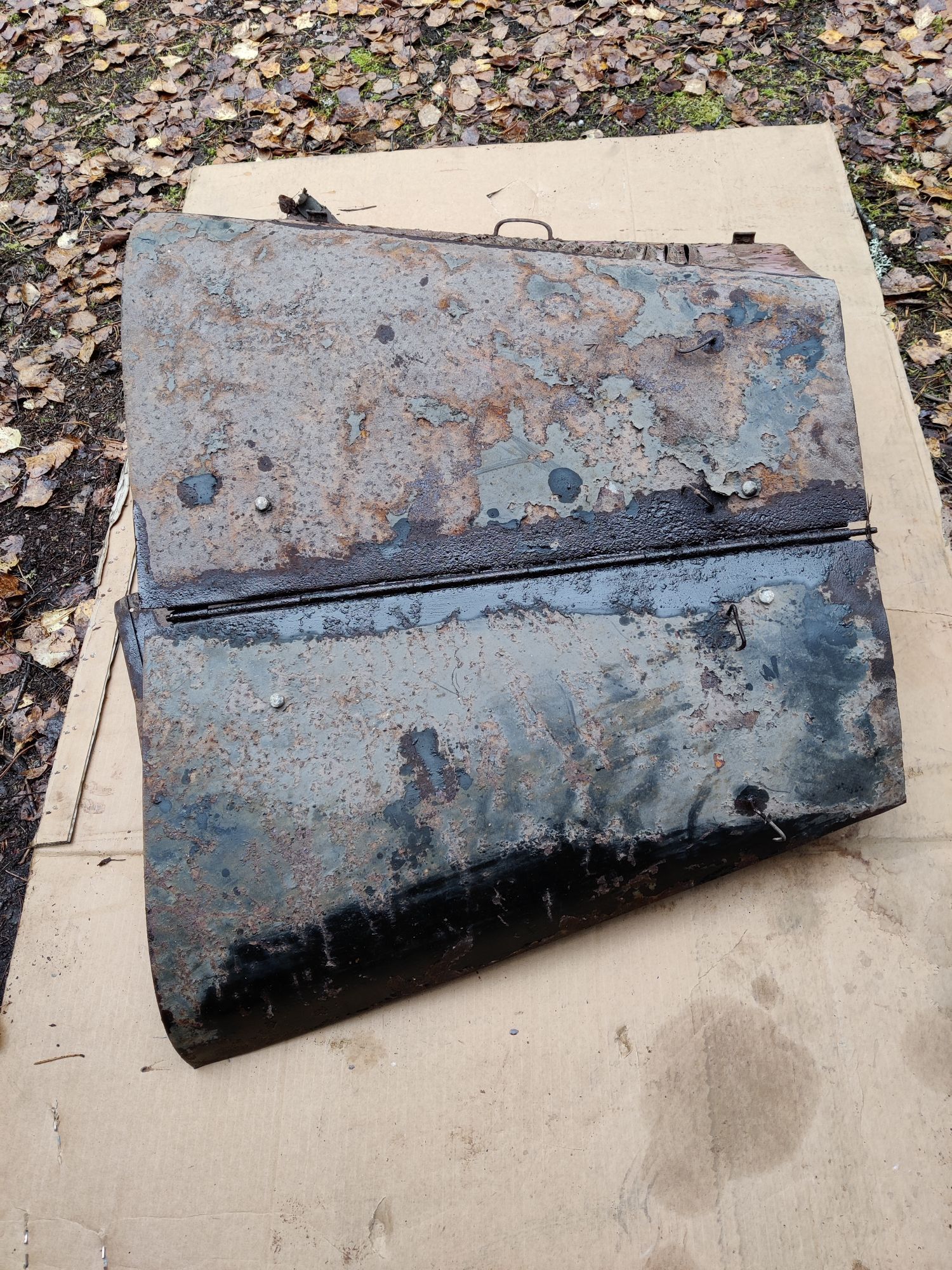 Konepellin sivu taittunut. Sivun korkeus n.43cm.